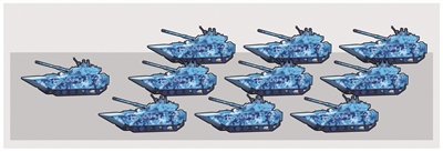 今年參加閱兵的坦克部隊來自北京軍區(qū)第38集團軍。在所有參閱的裝備方隊里,它們將第一個駛過天安門廣場。和其他方隊使用的矩形編隊不同,坦克方隊以箭形編隊前行。這次參閱的坦克為99A式坦克,是99式坦克的改進型,性能與99式坦克相比有本質(zhì)性的提升。坦克方隊受閱長徑達112.6米,每行駛100米,駕駛員需要調(diào)整方向48次才能保證騎線,展現(xiàn)的可謂是“指尖上的舞蹈”。