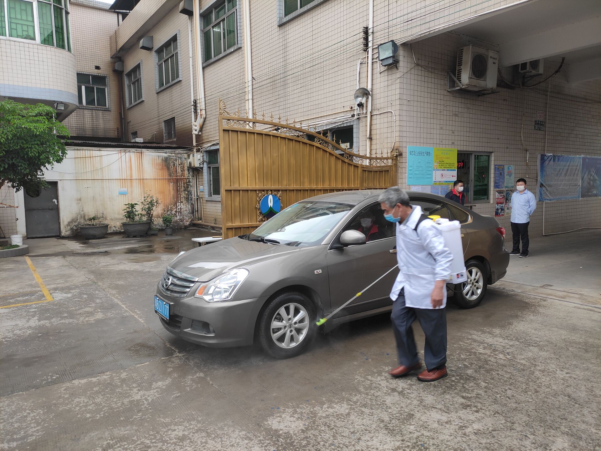 對(duì)剛進(jìn)廠的車(chē)進(jìn)行消毒