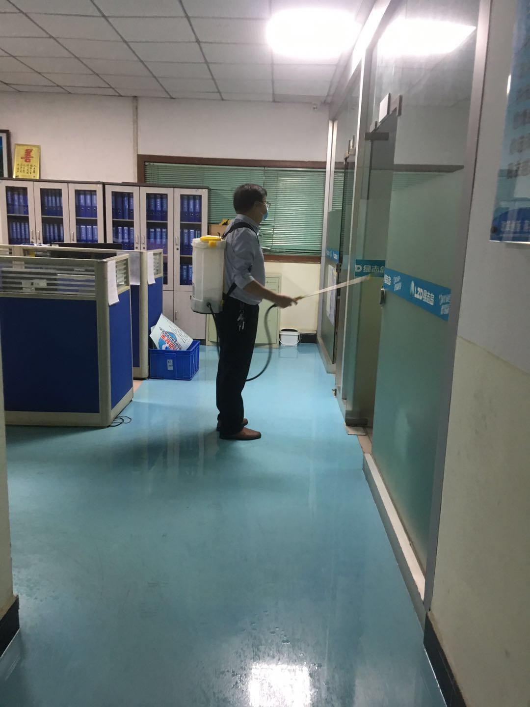 賴(lài)總對(duì)車(chē)間每個(gè)角落用84消毒水進(jìn)行消毒