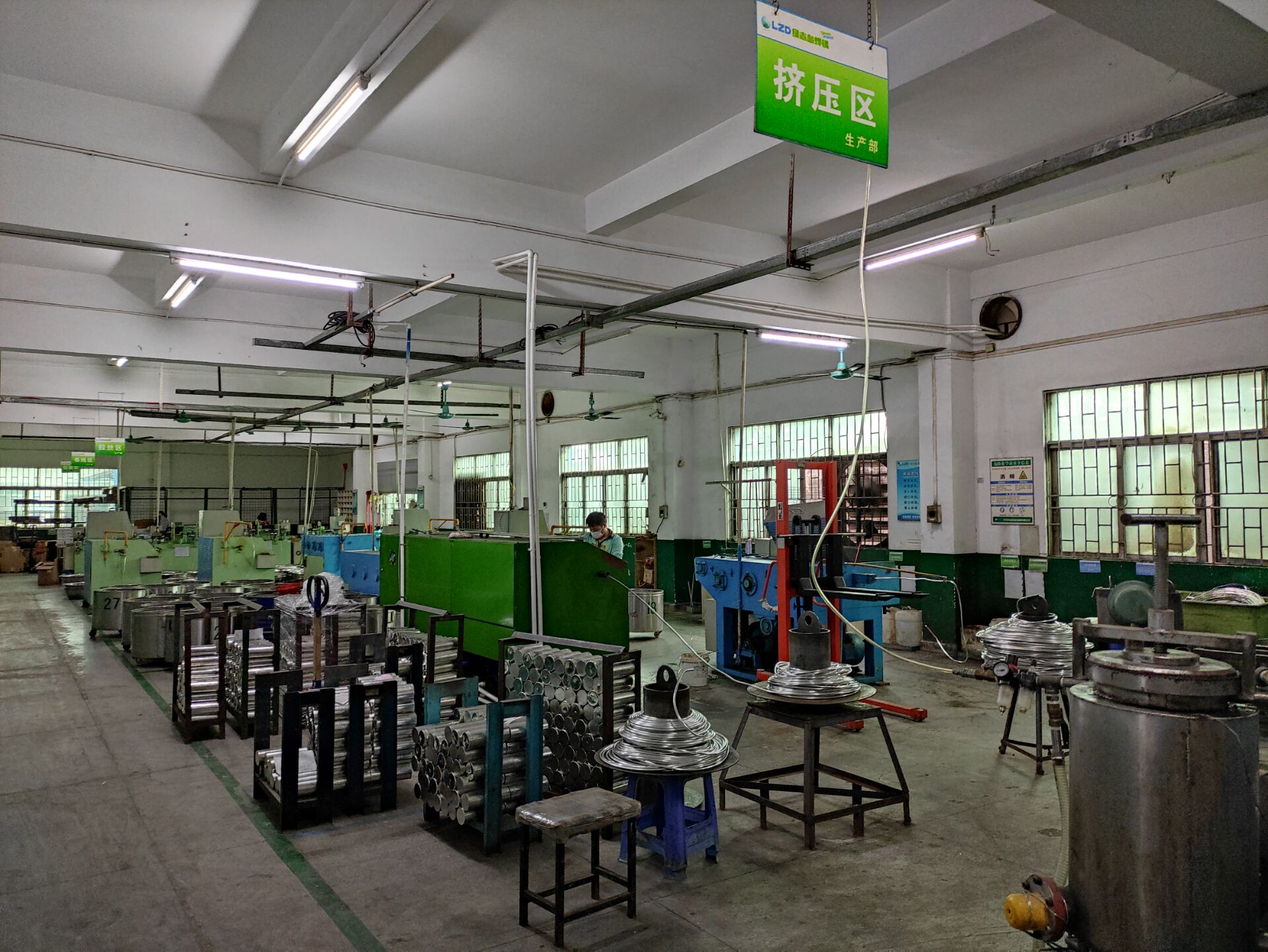 化工部梁工在拉絲機(jī)上幫忙